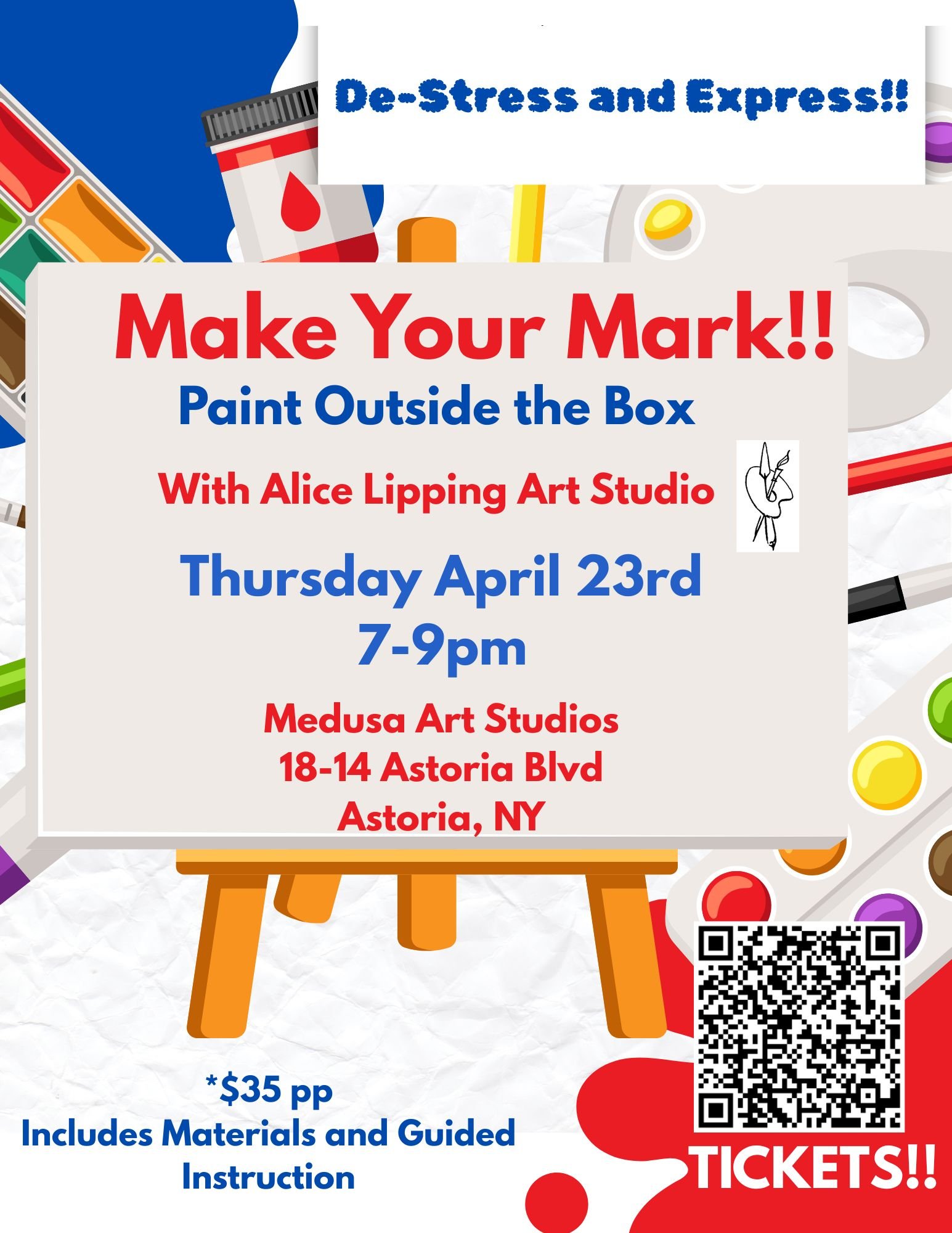 Join Queens artist Alice Lipping for a creative and relaxed painting experience where you’ll explore abstract art through expressive mark making, texture, and layering techniques. This is not your typical paint-and-sip—participants are encouraged to experiment with different tools and techniques to create a unique and personal composition.